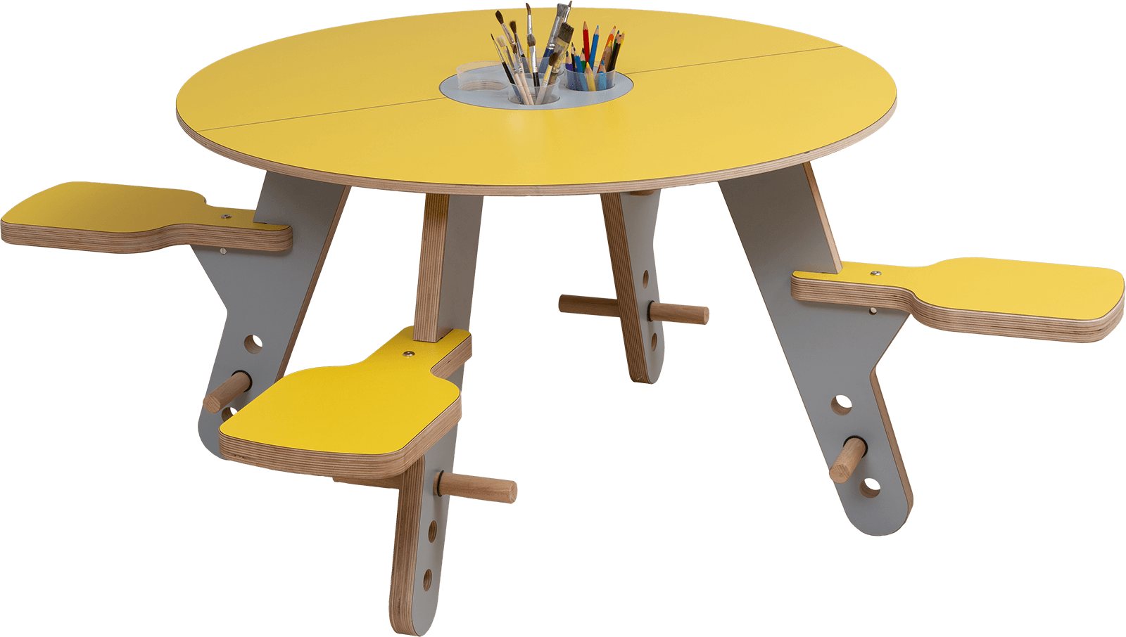 Meklē drošu, kvalitatīvu un ergonomisku rotaļu galdu bērniem? TAVI ir ideāla izvēle bērnudārziem, muzejiem, kafejnīcām, ārstniecības iestādēm un citām publiskām telpām. Četras sēdvietas ir stingri piestiprinātas pie galda konstrukcijas, kas nodrošina bērnu drošību un novērš apgāšanos.